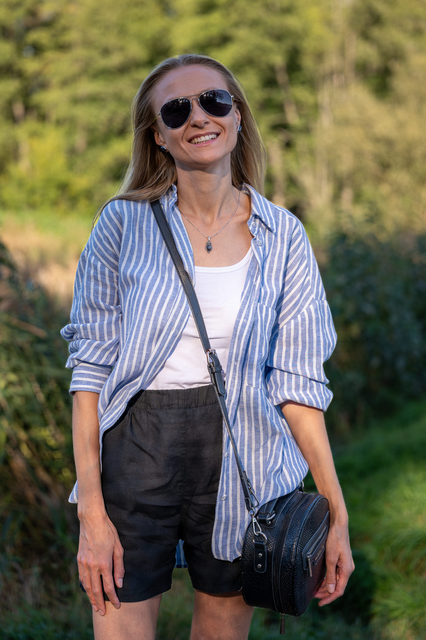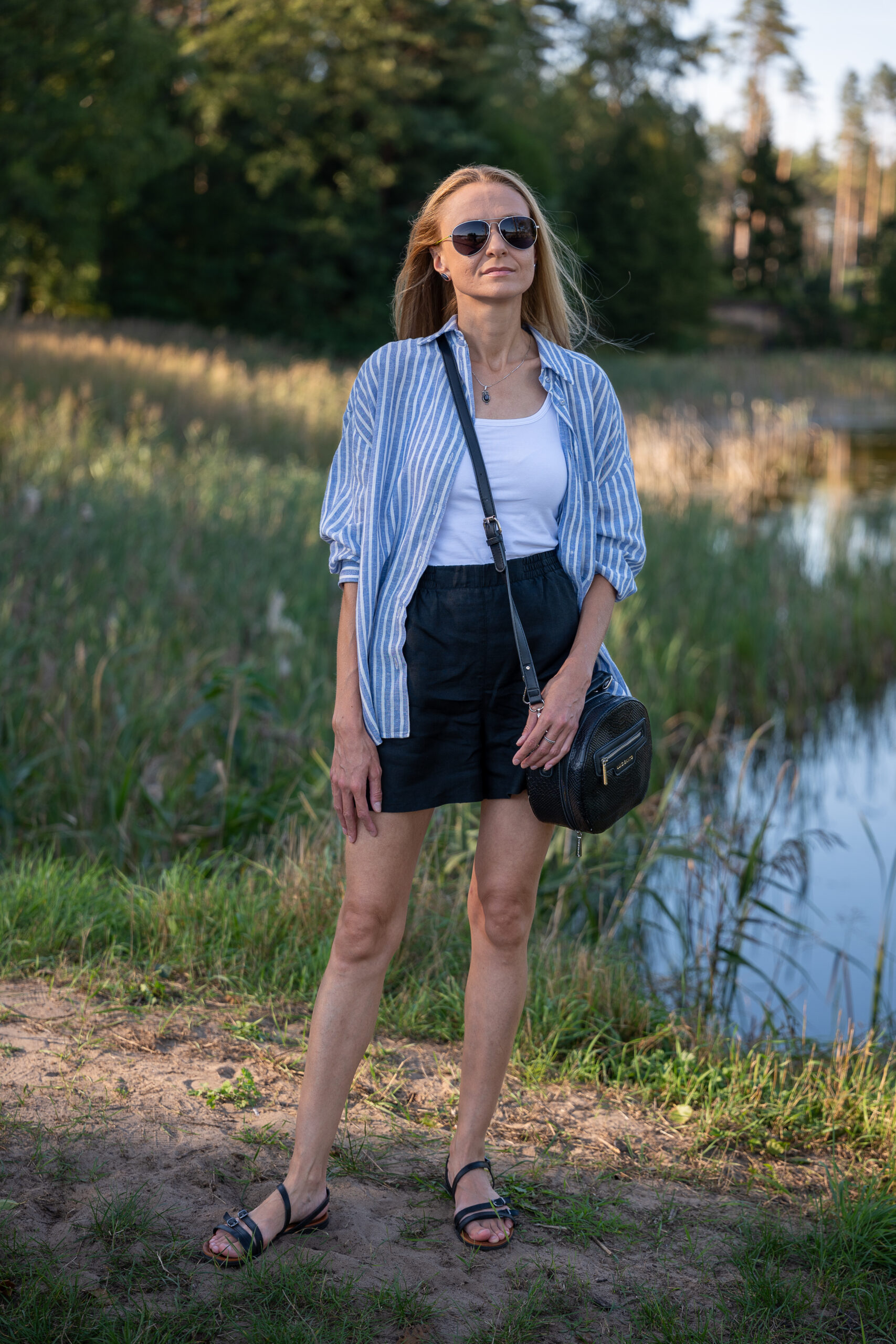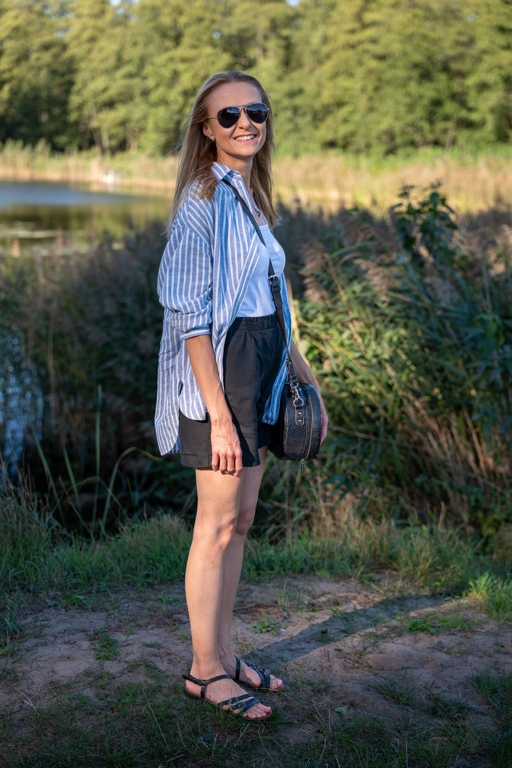 Top – Pimkie, Koszula – Zara, Szorty – Bombshe, Sandały – Lasocki/CCC, Torebka – Luigisanto, Okulary – Sinsay, Kolczyki i naszyjnik – Muzeum Mineralogiczne w Szklarskiej Porębie, Pierścionek – Hillysheep