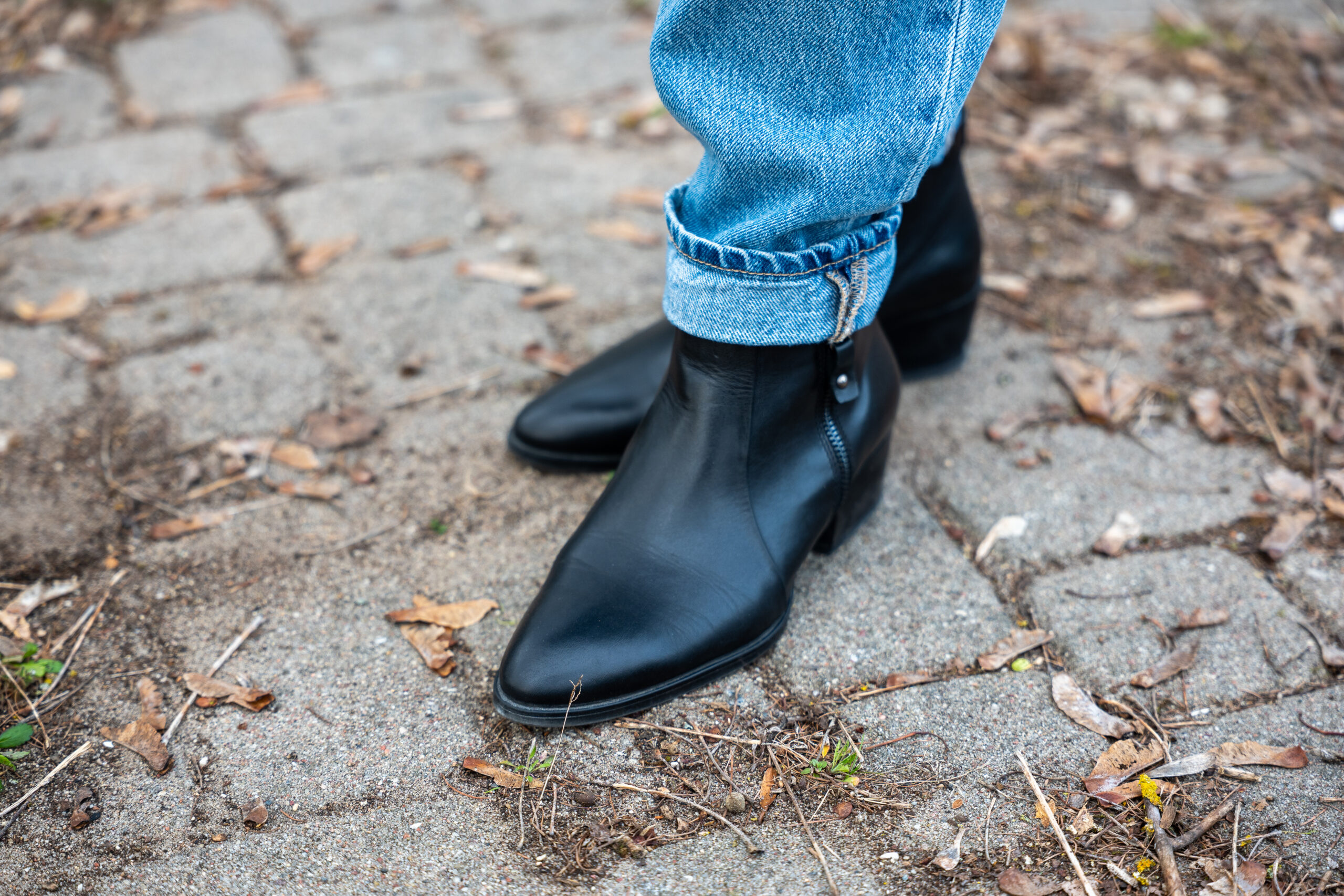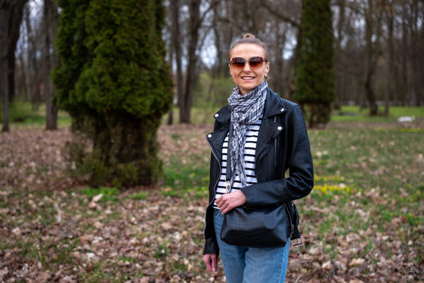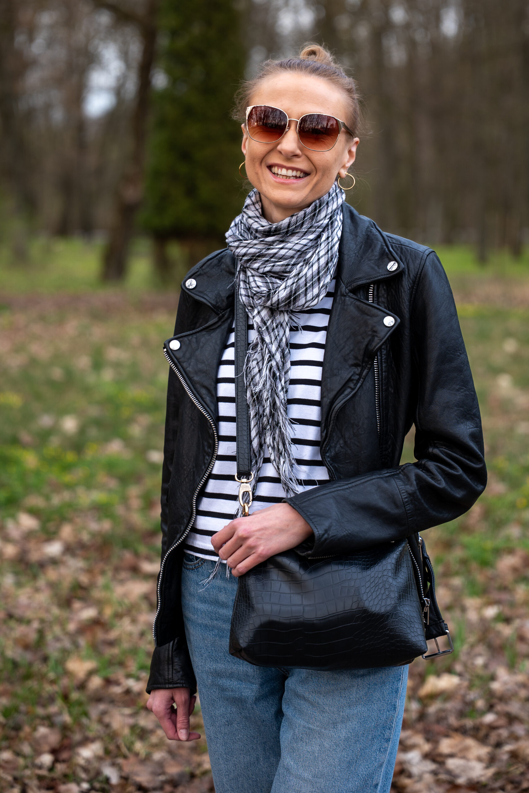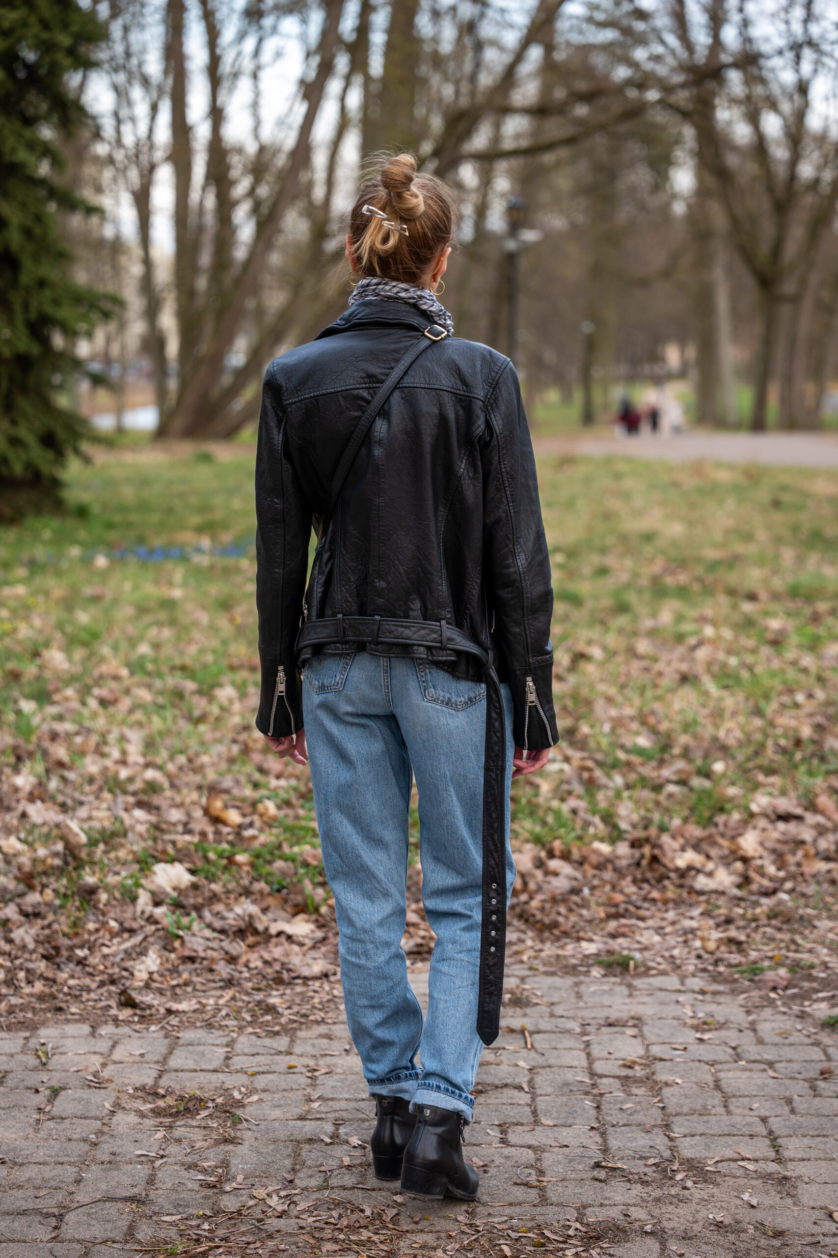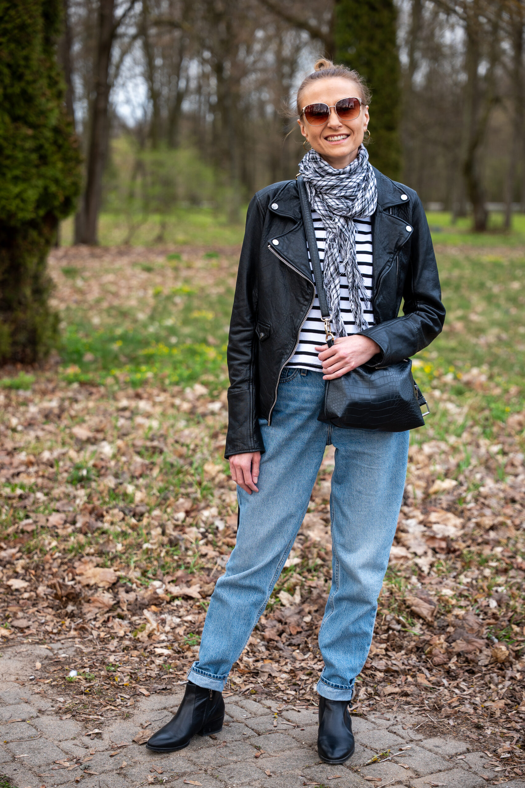 Spodnie – Levis, Bluzka z długim rękawem – NA-KD, Kurtka – Ochnik, Buty – Lasocki/CCC,